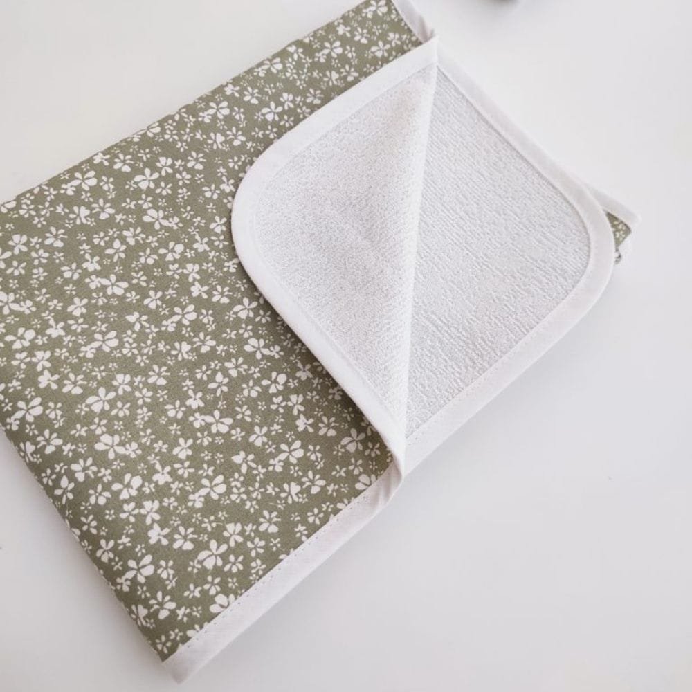 Το κάλυμμα αλλαγής πάνας είναι ραμμένο στο χέρι με 100% βαμβακερό ύφασμα από την πλευρά που ακουμπάμε το μωρό και αδιάβροχο πετσετέ ύφασμα από την άλλη. Είναι φιλικό προς το ευαίσθητο δερματάκι του μωρού.