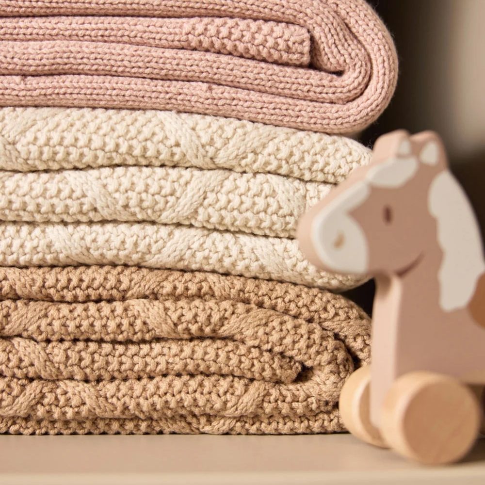 Αυτή η χαριτωμένη πλεκτή κουβέρτα με σχέδιο Cosy Knit κρατά το μωρό σας άνετα ζεστό και είναι εξαιρετικά απαλή χάρη στην εσωτερική επένδυση από Teddy fleece.