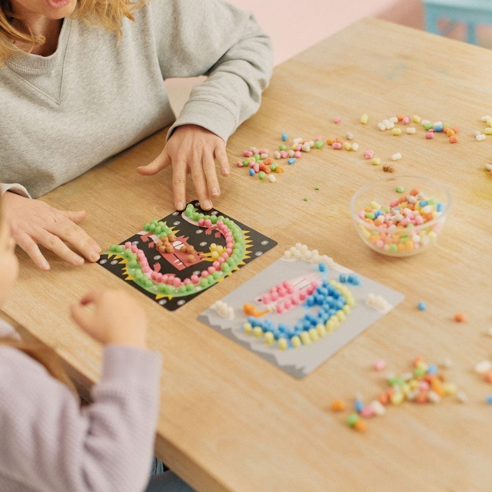 Κάθε κουτί περιέχει 6 διαφορετικές φιγούρες που καθοδηγούν τα παιδάκια πως να τοποθετήσουν τα σφουγγαράκια για να σχηματίσουν την όμορφη εικόνα!